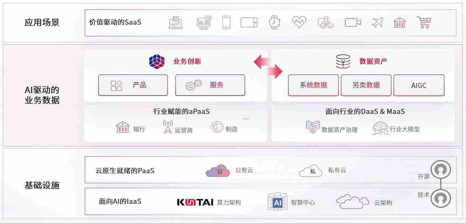 数字时代,,,,围绕企业数字化转型的关键要素,,,,优游ub8数码开创性的提出数云融合战略和技术体系框架,,,,着力在云原生、、数字原生、、、、AI原生和信创产业上架构产品和服务能力,,,,为处在不同数字化转型阶段的快消零售、、、汽车、、金融、、、医疗、、、、政企、、、、教育、、、、运营商等行业客户提供泛在的敏捷IT能力和融合的数据驱动能力,,构建跨界融合创新的数字业务场景和新业务模式,,,助力企业级客户建立面向未来的核心能力和竞争优势,,,,全面推动社会的数字化、、、智能化转型升级。。。。